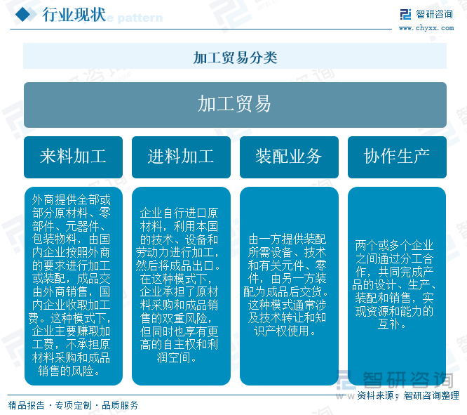 加工商业是指运营企业进口全数或者部门原辅材料、零部件、元器件、包拆物料,颠末加工或者拆卸后,将制成品复出口的运营勾当。其焦点特征正在于“两端正在外”,即原料进口和成品出口均面向国际市场。常见的加工商业体例包罗:进料加工、来料加工、拆卸营业和协做出产。