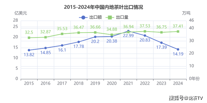 据中国海关动静,2024年中国内地茶叶出口额14。19亿美元,同比削减18。39%;出口量37。41万吨,同比增加1。79%。2024年中国内地茶叶进口额1。57亿美元,同比增加7。53%;进口量5。40万吨,同比增加38。34%。